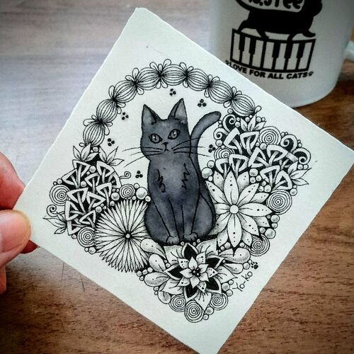 ステイホームな感じの黒猫。 この黒猫は思いがけない出来事で出会えました。 そう、失敗したのです。 しかし、ゼンタングルに失敗や間違いはありません。下描きもほとんどしませんし、消しゴムもありません。思いがけない出来事が発生してしまっても、受け入…