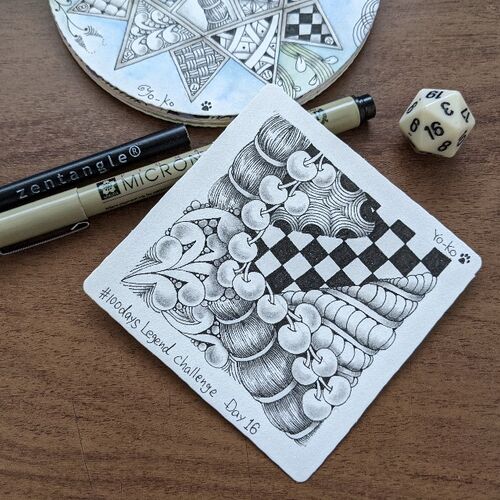 ご訪問ありがとうございます ゼンタングル認定講師の中嶋洋子です レッスンの詳しい内容はこちらをご覧下さい ︙ 100日レジェンドチャレンジ 16日目 ぐにゃぐにゃストリングです。 ストリングの上にPokerootを描いて真ん中を区切りました。 Knightsbridgeに…