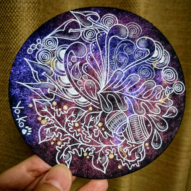 ギラギラに着色したゼンダラに白のジェリーロールで描きました。