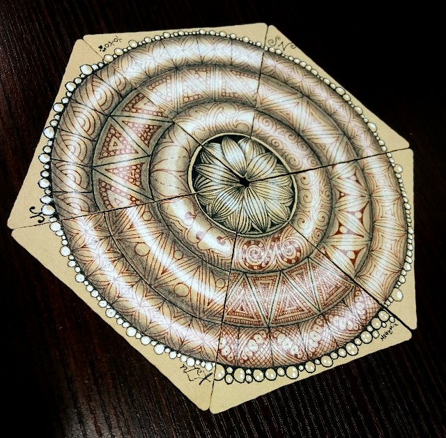 続いて、スクエアのタンタイルに水彩色鉛筆で着色をしたゼンボタン。