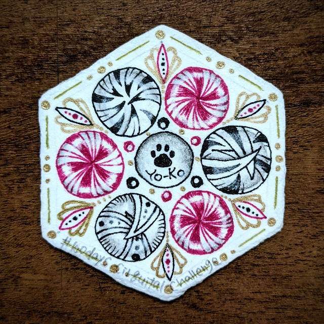 また、のぞみペーパーに描きました。とても小さな紙なので、色々描きこむよりもモノタングルで大きく1つ描くつもりくらいが良さそうです。