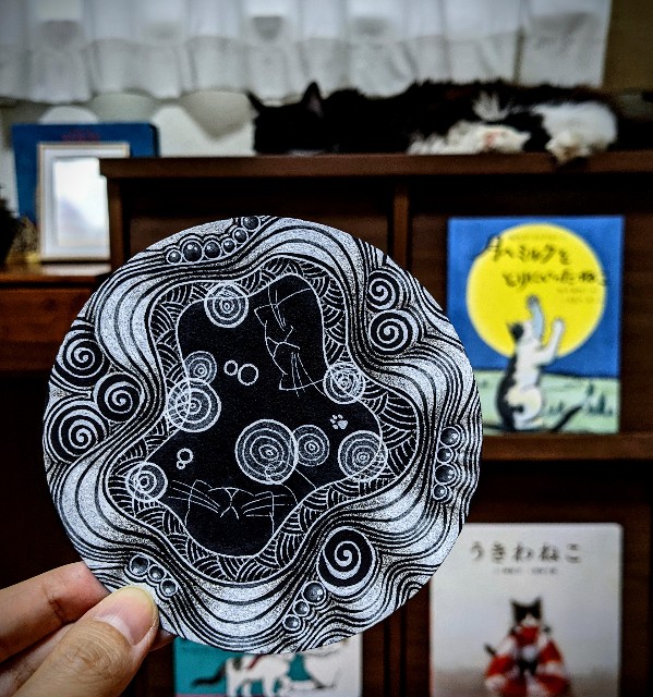 なんとなく下から見た猫が可愛いなと思って描き足したのですが、ゴチャゴチャしてしまいました。