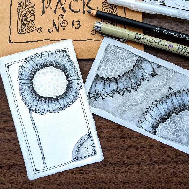 ヴァーディゴーというタングルを描くイメージで後ろに重なるように花びらを描き足していきます。