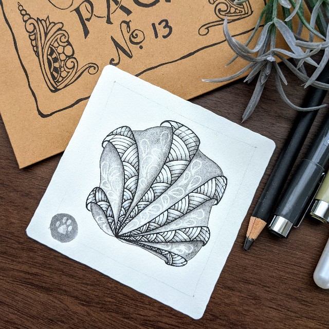 アクアフラというタングルにシャタックとフラックスを描き込んでいます(色の変わっているタングル名をクリックするとステップアウトが見られます)