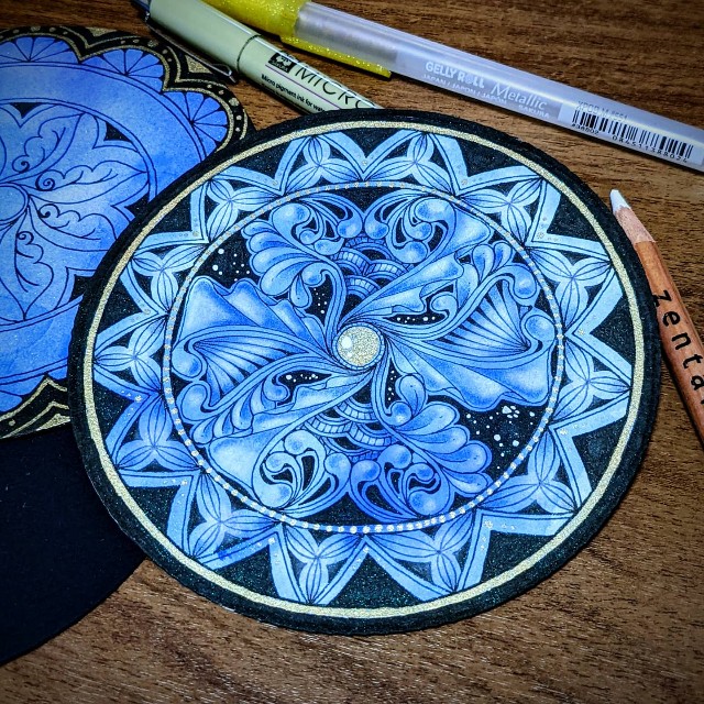 ドラマばかり出ました。ジェティーズという丸い飾りのようなタングル可愛いです。黒い帯の部分にハイライトを残しながら塗りつぶしている時が楽しいです。