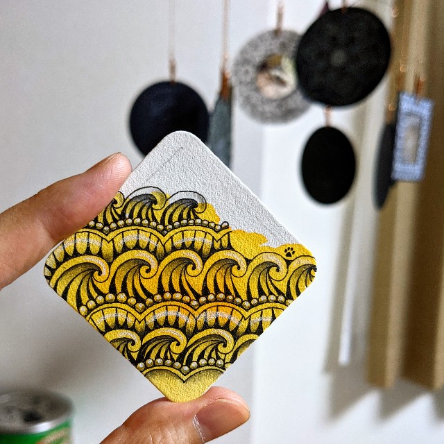 黄色単色でタイルを染めたのは初めてかもしれないです。なかなか良いですね。色はサンフラワーイエローという色です。